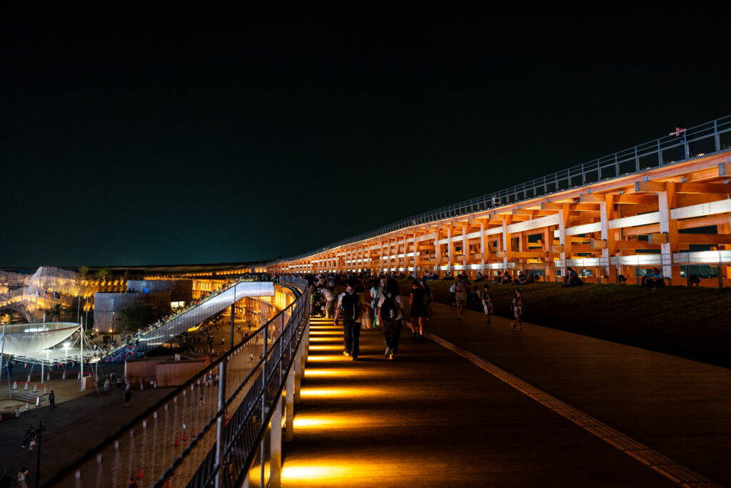なお、大屋根リング自体には閉館時間の22:00近くまでいることができますが、リングのさらに上の方の道に入るのは20:45までとなります。より高いところから景色を楽しみたいという方は、早めに登っておくことをオススメします。
