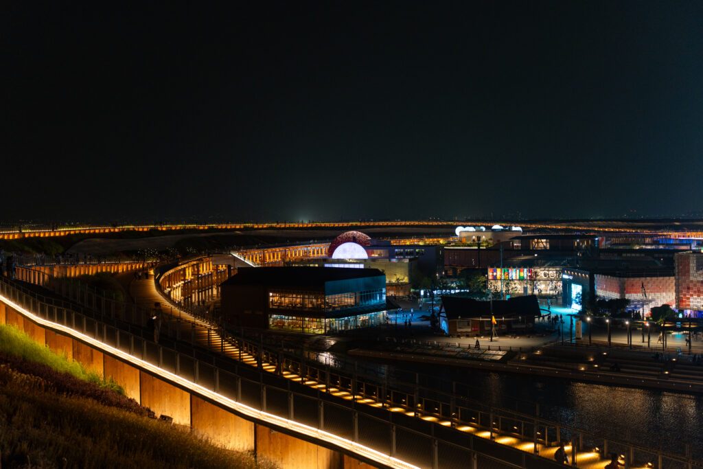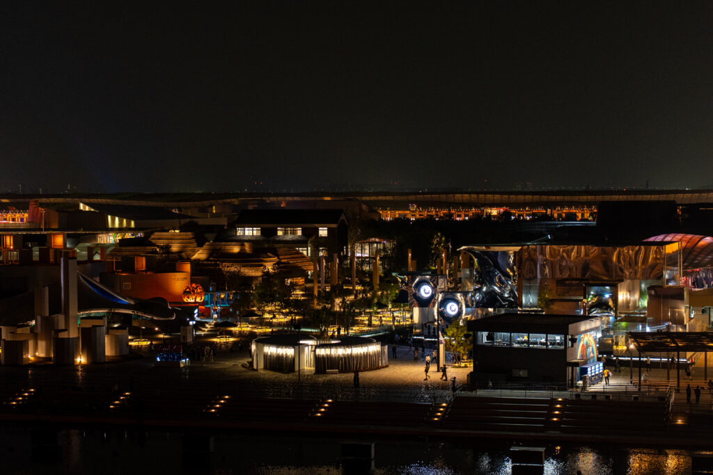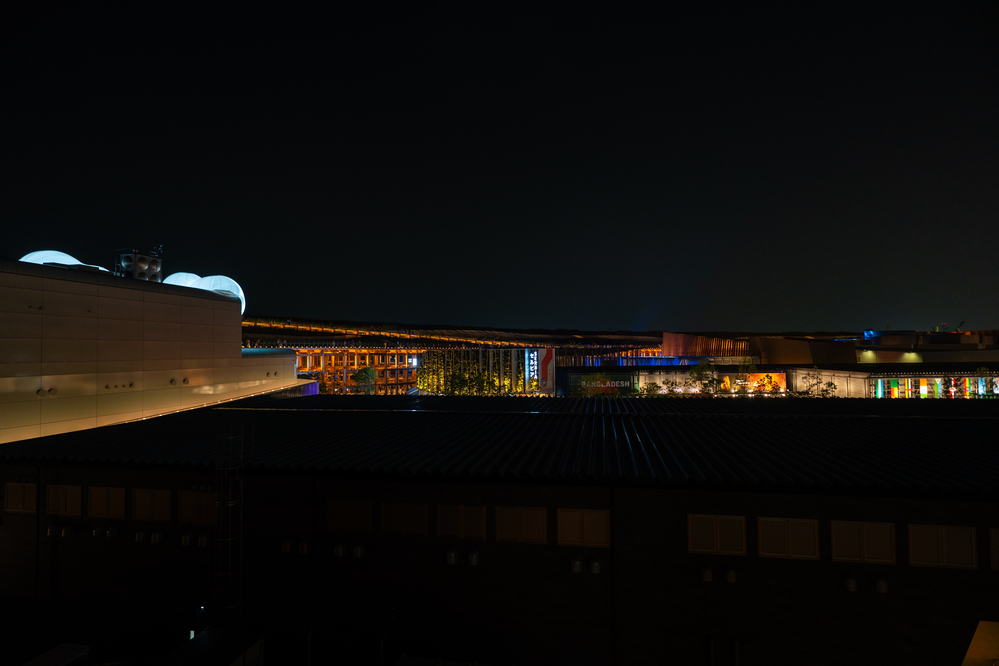 大屋根リングからの夜景を堪能し、再び東ゲートに戻ります。もちろん途中では、各パビリオンの夜の外観も撮影!笑